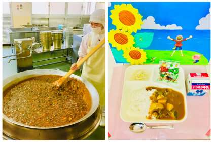 夏野菜のカレーライスには、かぼちゃ、なす、ピーマン、トマト(缶)、玉ねぎ、にんにく、セロリ7種類の野菜が使われています。