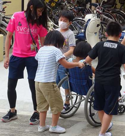 坂道を下るときは、後ろ向きにゆっくりと進みます。