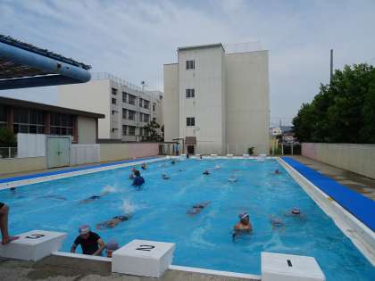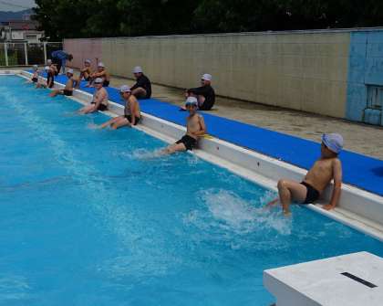 子どもたちは、緊張感をもって水泳に取り組んでいました。
