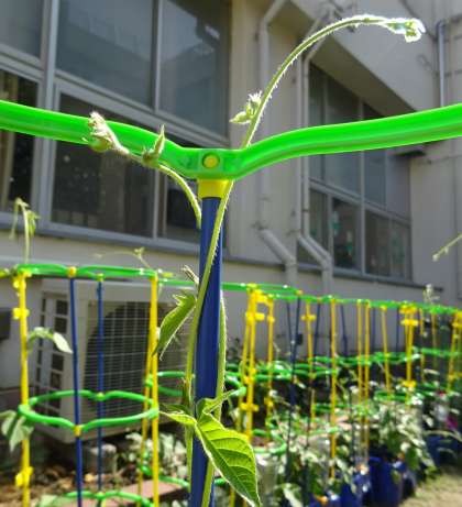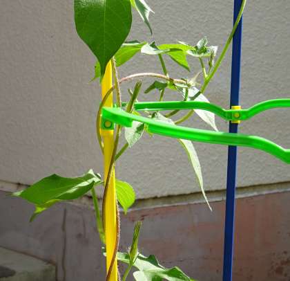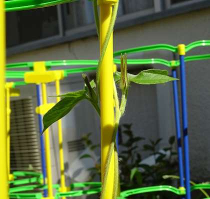 太陽を目指して、上へと伸びていくアサガオのつる。