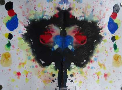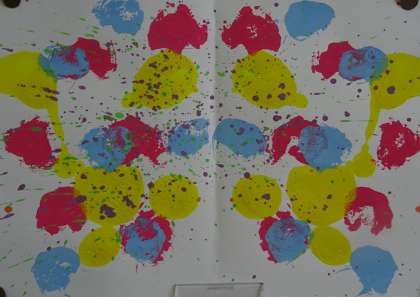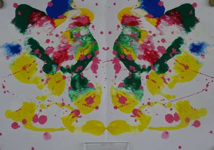 左右対称に色が転写される「デカルコマニー」という表現技法です。