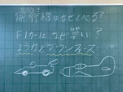 本日の6時限目と7時限目に、生活科で、「飛行機は何故飛べて、F-1カーは何故早い?揚力とダウンフォース」の授業をしました。週末にみんな、自分で調べて今日の授業に挑みました。