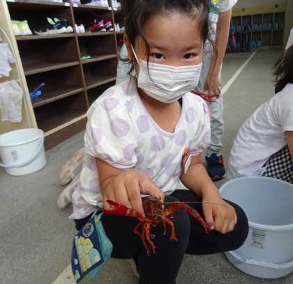2年生は、グループごとに1匹ずつのザリガニを育てています。
