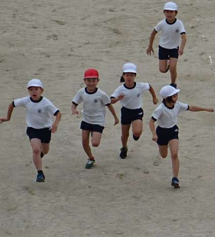 2年生の子どもたちは、スタートダッシュの練習やおにごっこなどをして楽しく活動していました。
