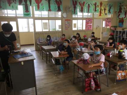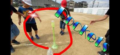 ロケットが飛ぶ仕組みを学び、みんなで飛ばしました。