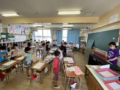 国語科の単元「サツマイモの育て方」では、事前に調べ学習をしてくれた子ども達がいました。音楽では、校歌をしっかりと覚えました。