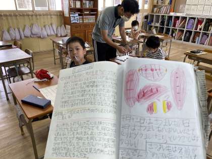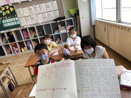 2年生の自主学習は「人は何故しぬのか?」で科学的に細胞が朽ち果てていく様子を教えてくれたり、「花火」では日本で初めて花火を見た人物や花火玉の事を調べたり、スパワールドに行った事を絵日記にして書いてきてくれました。