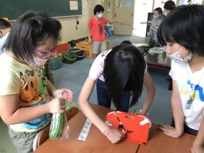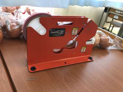 これが袋詰めの機械です。たくさんの野菜を袋詰めして、そのあとにシールを貼ります。