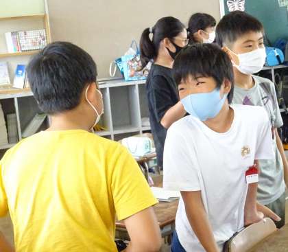 6年生が、外国語(英語)の授業で英会話をしている様子です。