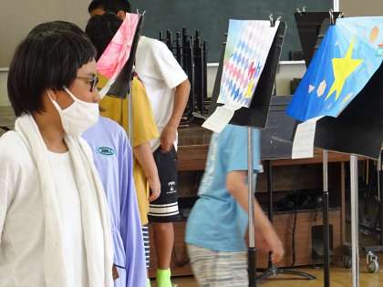 音楽室には、6年生が描いたグラデーションの絵が飾られています。
