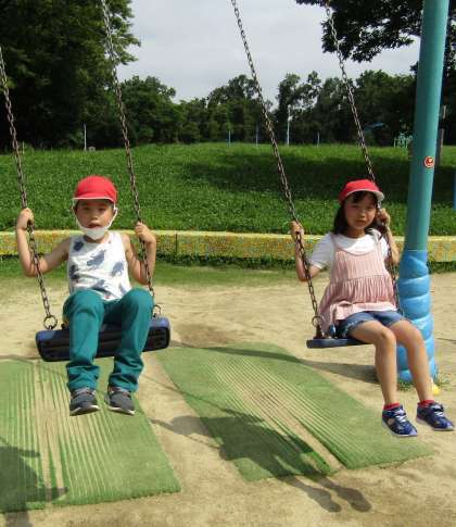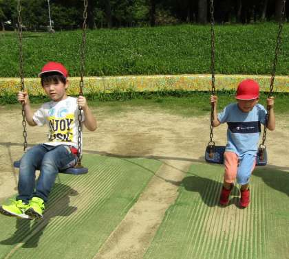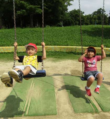 楽しそうにブランコに揺られる子どもたち。