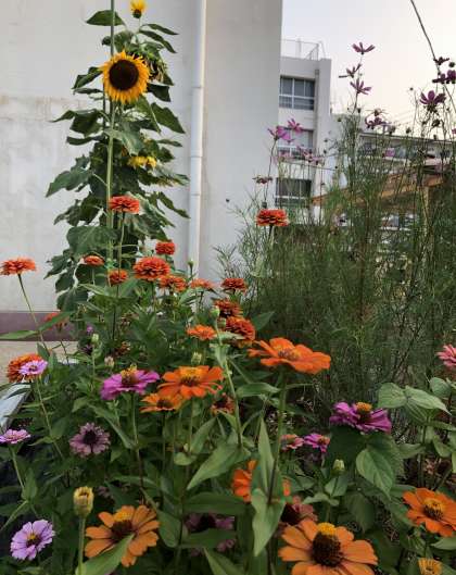 ひまわり、コスモス、百日草