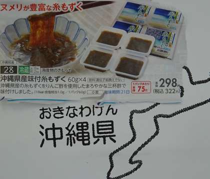 沖縄県産の『糸もずく』も大阪のスーパーで売られています。