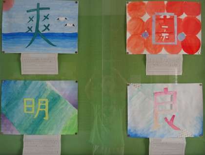 学校の掲示板には、6年生の作品がズラリと並んでいます。