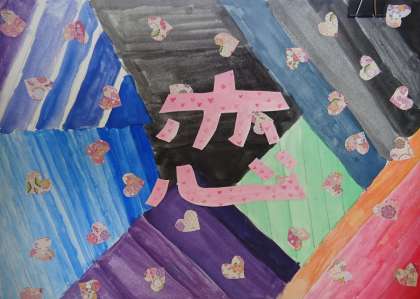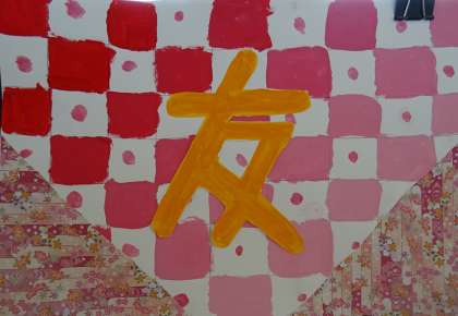 わたしは、友だちと会えて優しい気もちになりました。色紙でどうゆう形にしようと思って三角の形にしました。