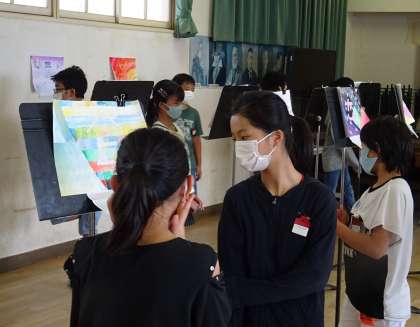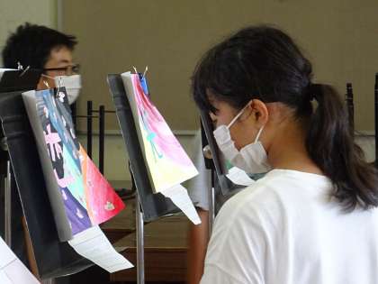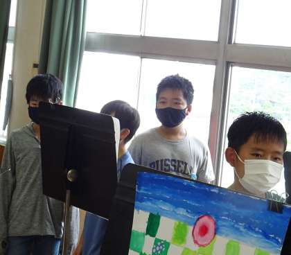 6年生は、お互いのクラスの作品を鑑賞し合いました。