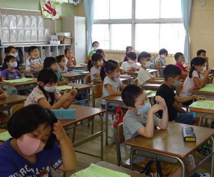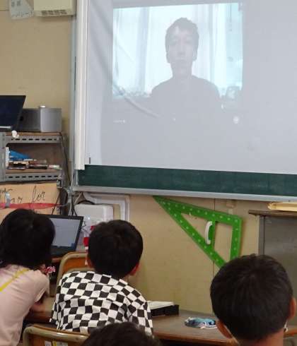 始業式では、校長室と各教室のパソコンが通信機能でつながりました。