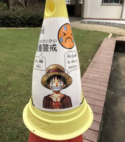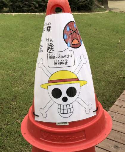 ・12時〜18時は「危険」と通知されましたので、中庭に赤色のコーンを設置しました。
