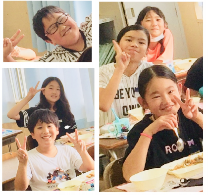 5年生の教室では、次々におかわりの列ができて、あっという間に食缶が空っぽになっていました。今日も「おいしいスマイル!」「元気もりもりスマイル!」がいっぱいでした。