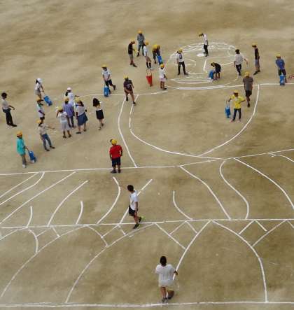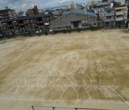おおきなキャンバスに、実物大の「奈良の大仏」が描かれました。