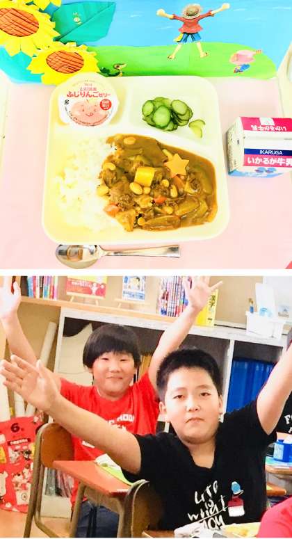 大人気のカレーライスにラッキーにんじん、りんごゼリーも登場して、どの学年の子どもたちもテンションが高めでした!