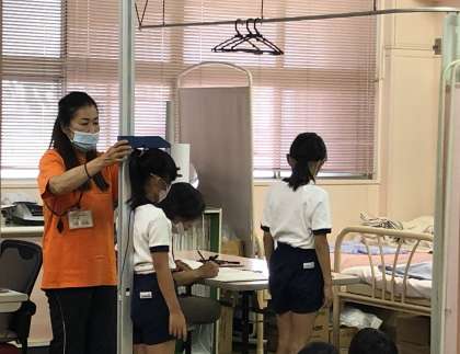 発育測定時には、いつも養護教諭による保健指導が行われています。