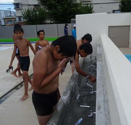 プール開きに参加いただいた地域の代表の皆様やPTAの会長、そして懸命な努力で新設プール完成にご尽力くださった全ての関係者の皆様に、心よりお礼申し上げます。
