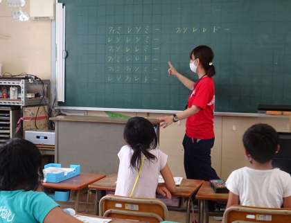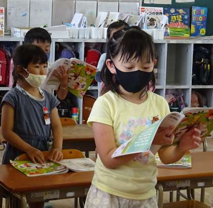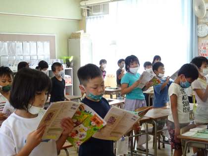 2年生は、音楽の授業で「虫の声」を歌っています。