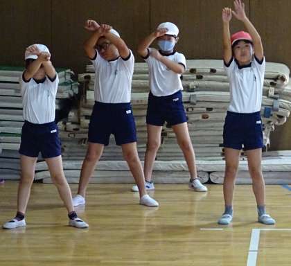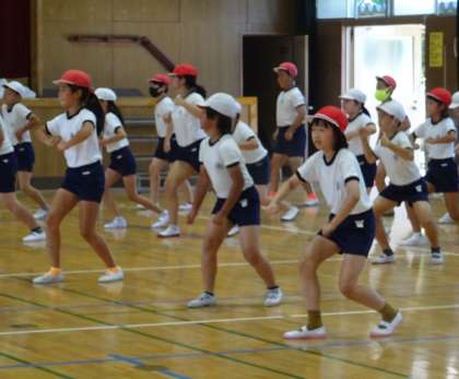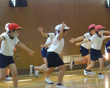 1組と2組が交替で休憩しながら、お互いの演技を見ています。