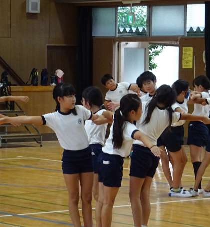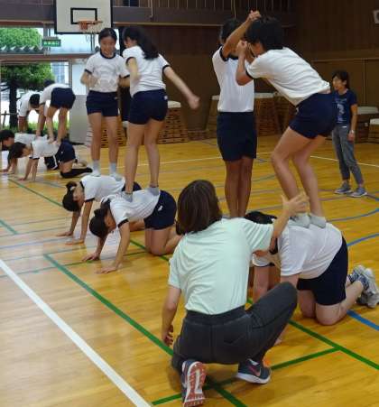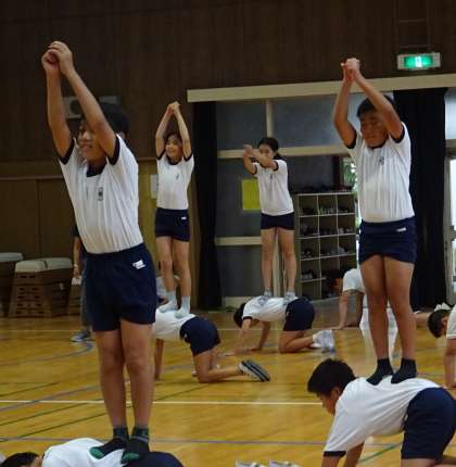 団体演技の練習をしている様子です。