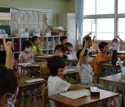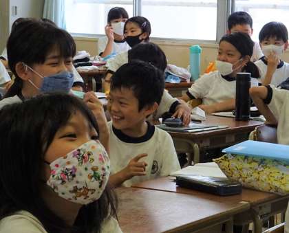教室の子どもたちは、ゲラゲラ笑いながら予想していました。