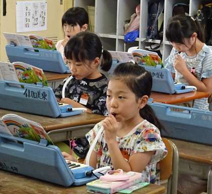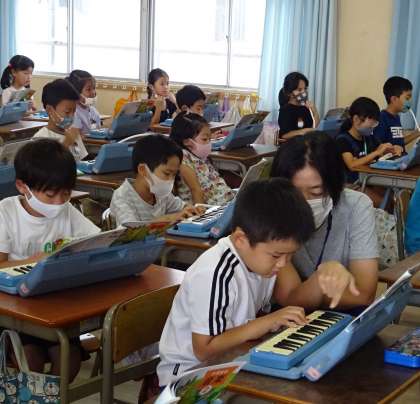2年生は、音楽の授業で鍵盤ハーモニカを演奏しました。