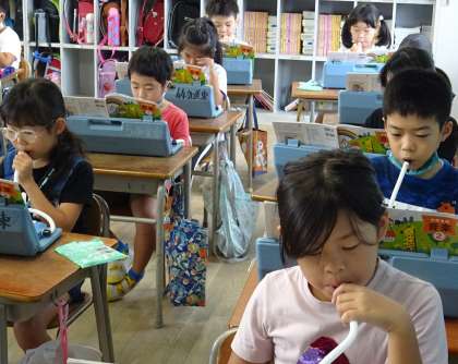 2年生が、鍵盤ハーモニカを演奏している様子です。