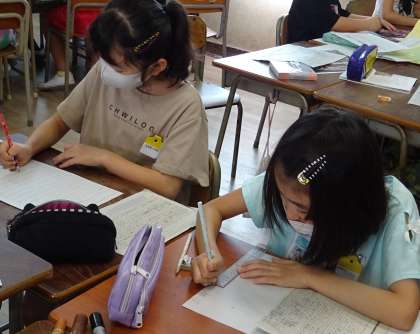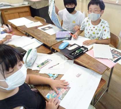 4年生は、運動会のダンスで踊る「龍踊り」や地域のお祭りのことを調べて、新聞を作っています。