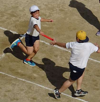 赤白帽子が、走っている途中で脱げないように、ゴムひもがしっかりと取り付けてられているか、お子様と一緒に確認していただくようお願いします。