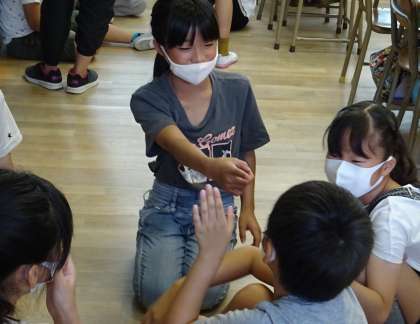 4年生は、3年に運動会で踊るダンスを教えます。