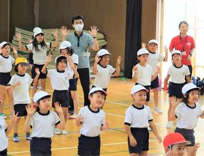 子どもたちは、ニッコリ笑顔で踊りを楽しんでいました。