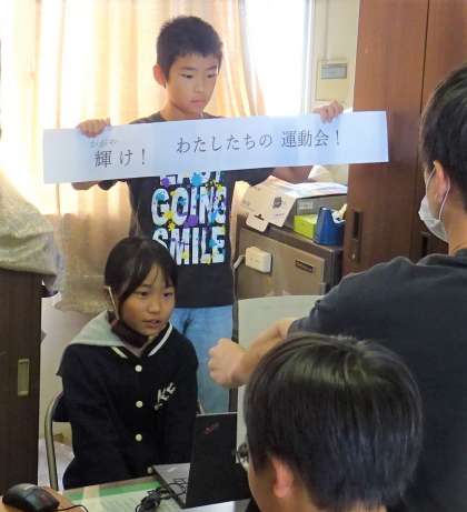 運動会のめあてを達成するために、全校児童が自分のめあてに向かって頑張ります。