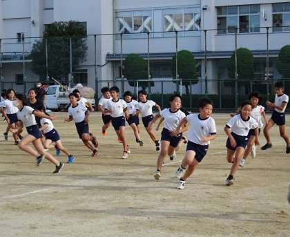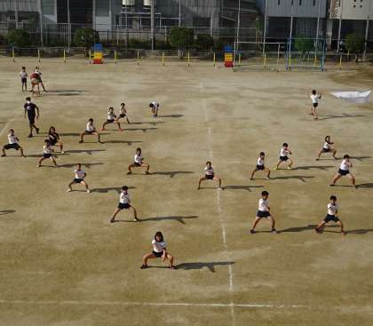 放課後の運動場に、気合いの入った掛け声と太鼓の音が響きます。