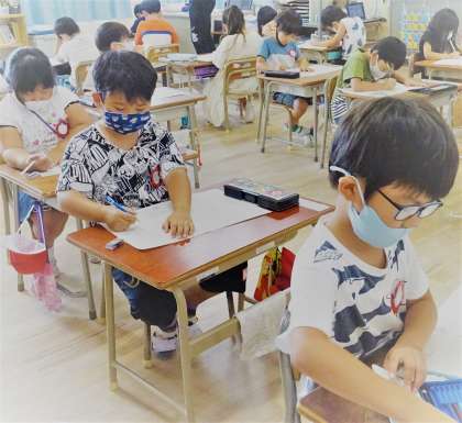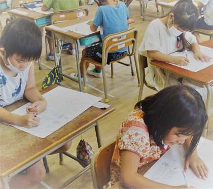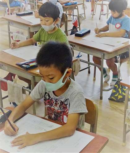 1年生は、「ひらがな」の書き問題に挑戦です。
