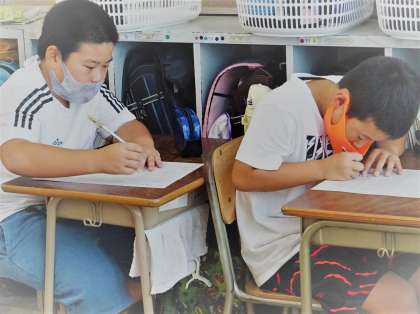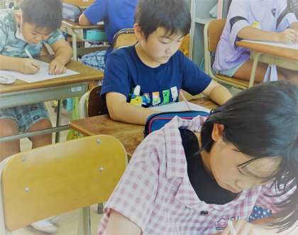 「漢字王!」に挑戦している4年生の様子です。