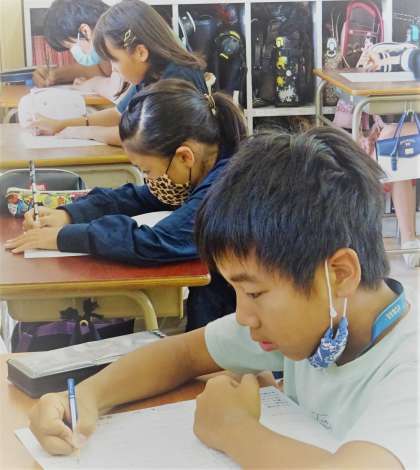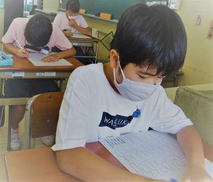「漢字王!」に挑戦している5年生の様子です。