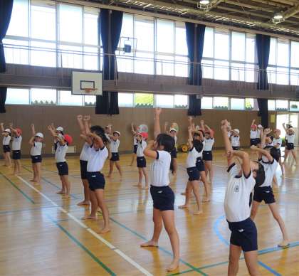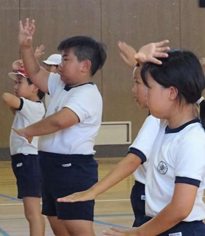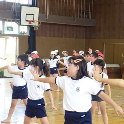 3年生と4年生が、ダンスの練習をしている様子です。