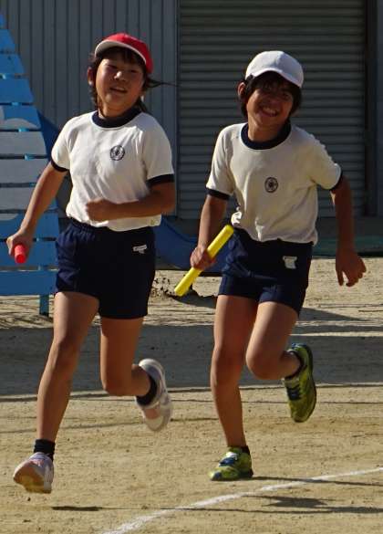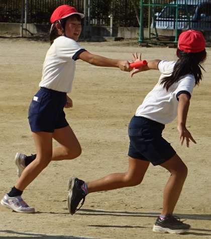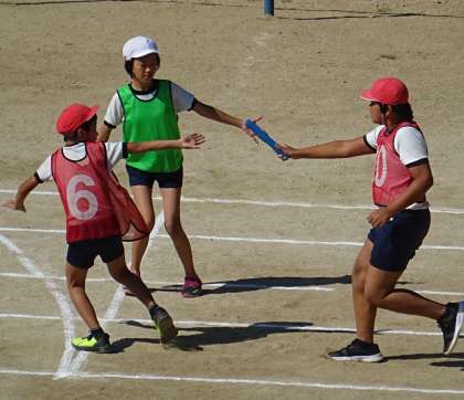 5年生がリレーの練習をしている様子です。