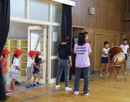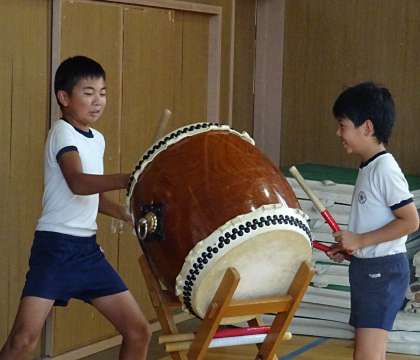 休み時間に太鼓の練習。