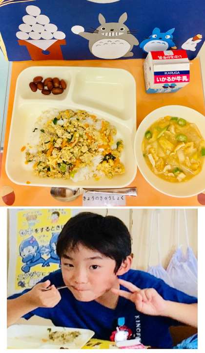 ごはんと一緒に食べる丼献立は、子どもたちの人気メニューの一つで、どの学年でも大好評でした。