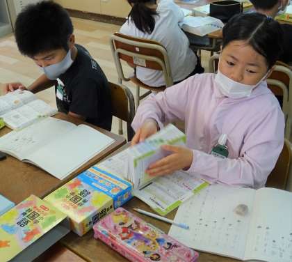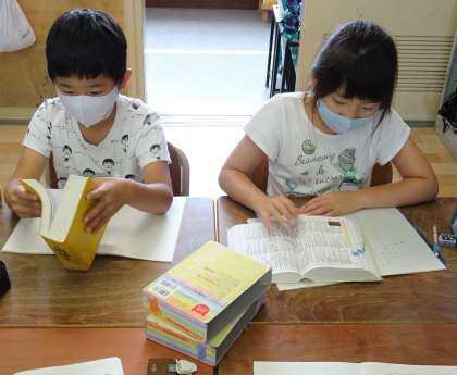 3年生が、国語辞典を使って学習している様子です。