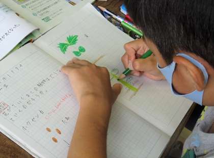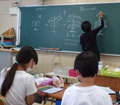 学習園で育ててきたホウセンカの様子を振り返りながら、植物が成長していく仕組みを学習しました。