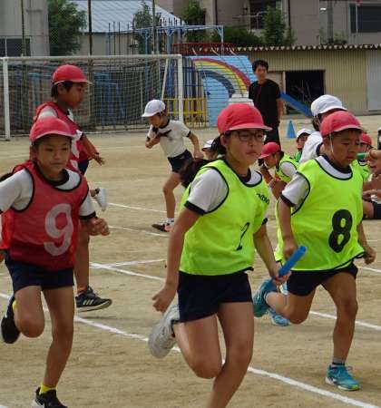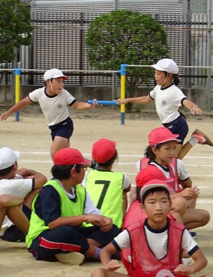 5年生が、リレーの練習をしている様子です。