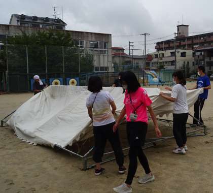 夕方、雨が止んだタイミングで運動会の準備を始めました。